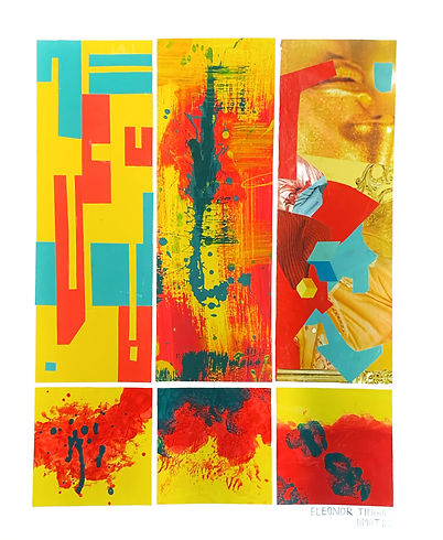 Paper, pencil, liner, acrylic, newspaper cutouts